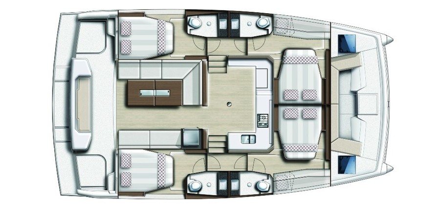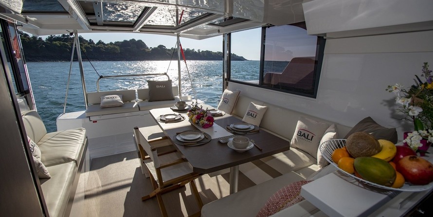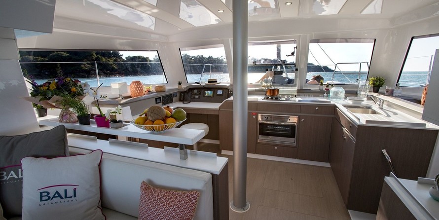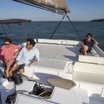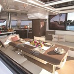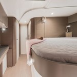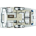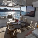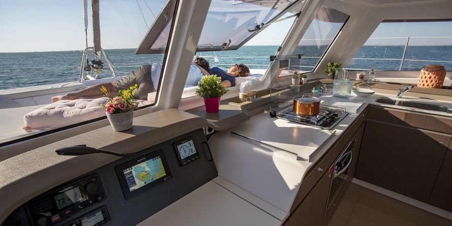 Boat equipment features classical mainsail, bimini and outside gps plotter. It also boasts an an audio system, outside speakers, flybridge, kayak and free stand up paddleboard. The fully-equipped galley includes a freezer, oven, cooker, sink and kitchen utensils.