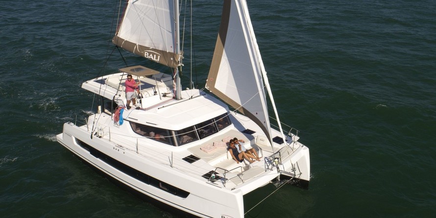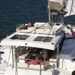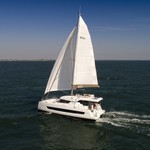 This catamaran is operated by the charter company Aldebaran Charter Company.
