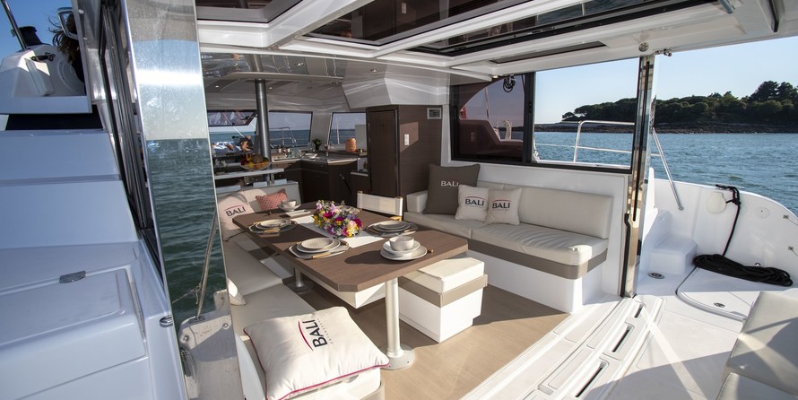 3-cabin catamaran Bali Catspace - Saomnais was built in 2021, and it is docked in Cala Talamanca, Spain.