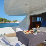 This motor yacht is operated by the charter company Prima Boats.