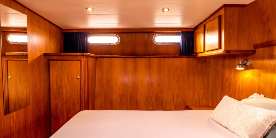Berth(s): 4 x (2 pers. French bed in aft cabin + 2 x 1 pers. in front cabin)