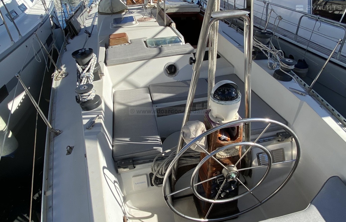 Timoneria totalmente revisionata. Elica di prua quik 110 kg di spinta nuova, boiler 30 LT, catena del 10 MT 100 nuova salpa ancora revisionato, ecoscandaglio/GPS Garmin nuovo, cartplotter Lorenz, caricabatterie 30 ah tre linee di carica, batterie nuove, pannello fotovoltaico 100 Wat.