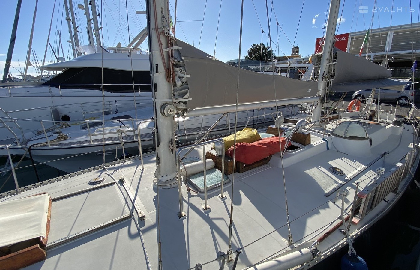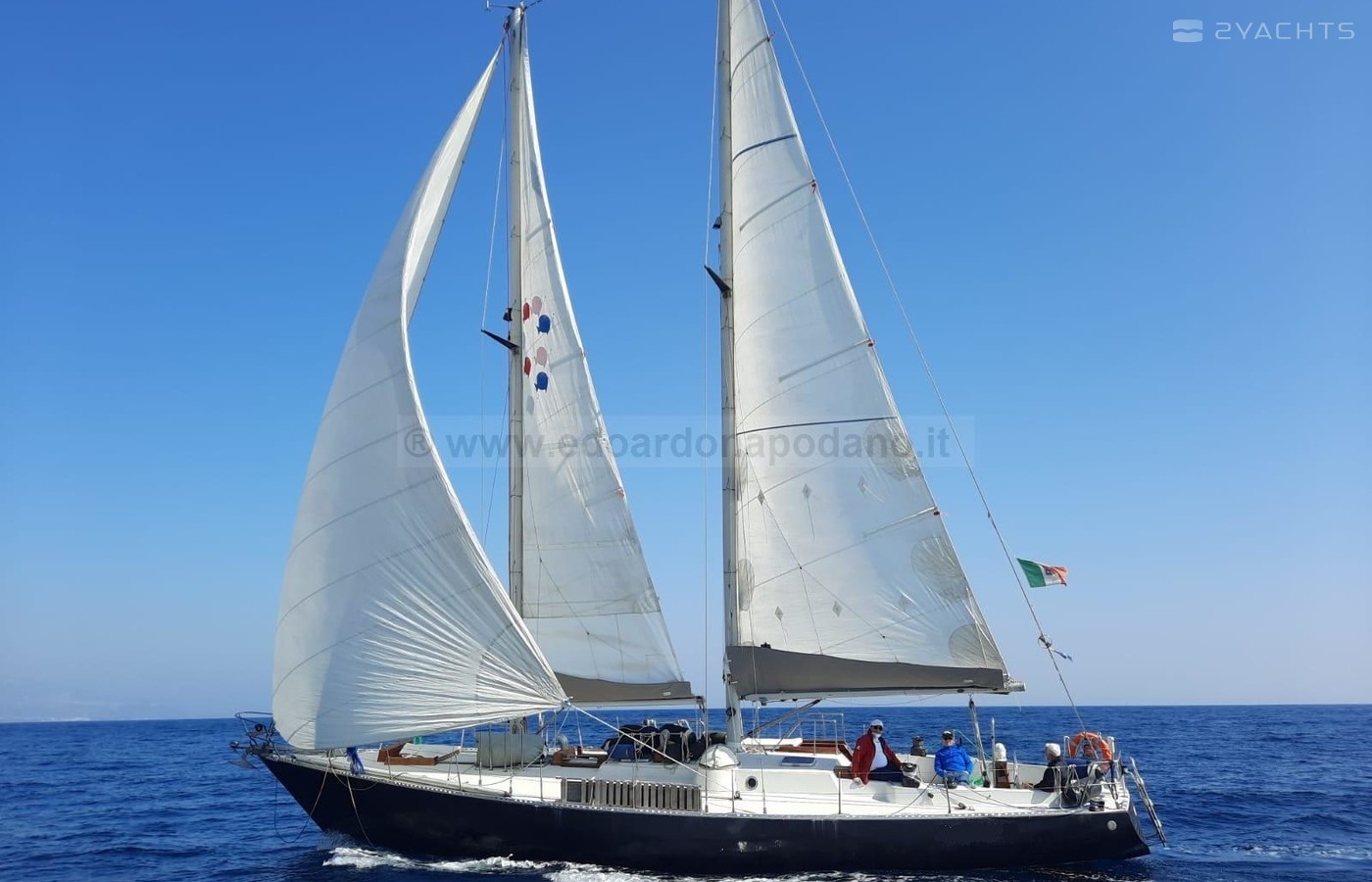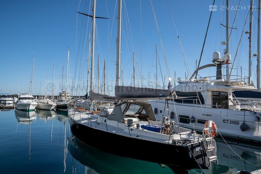 La barca è stata da noi costruita nel 1976 su disegno di Sciarelli e allestita nei mesi successivi .Gli interni, tutti in mogano, sono stati progettati a norme R.I.N.A. dall’architetto Lucia Beato (Segnalazione d’onore Compasso d’oro). La barca non ha mai cambiato proprietario. Le sartie sono state rinnovate l’anno scorso. Il Motore è un perkins 60 cv. Lo scafo non ha subito osmosi o altri danni. La barca ha goduto di regolare manutenzione ed è immediatamente navigabile.