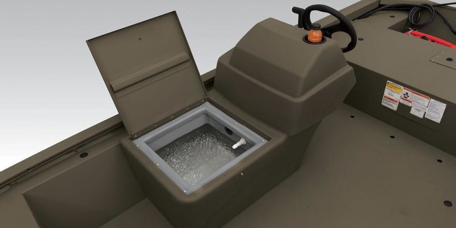 - Rotomolded aerated livewell integrated into front of console