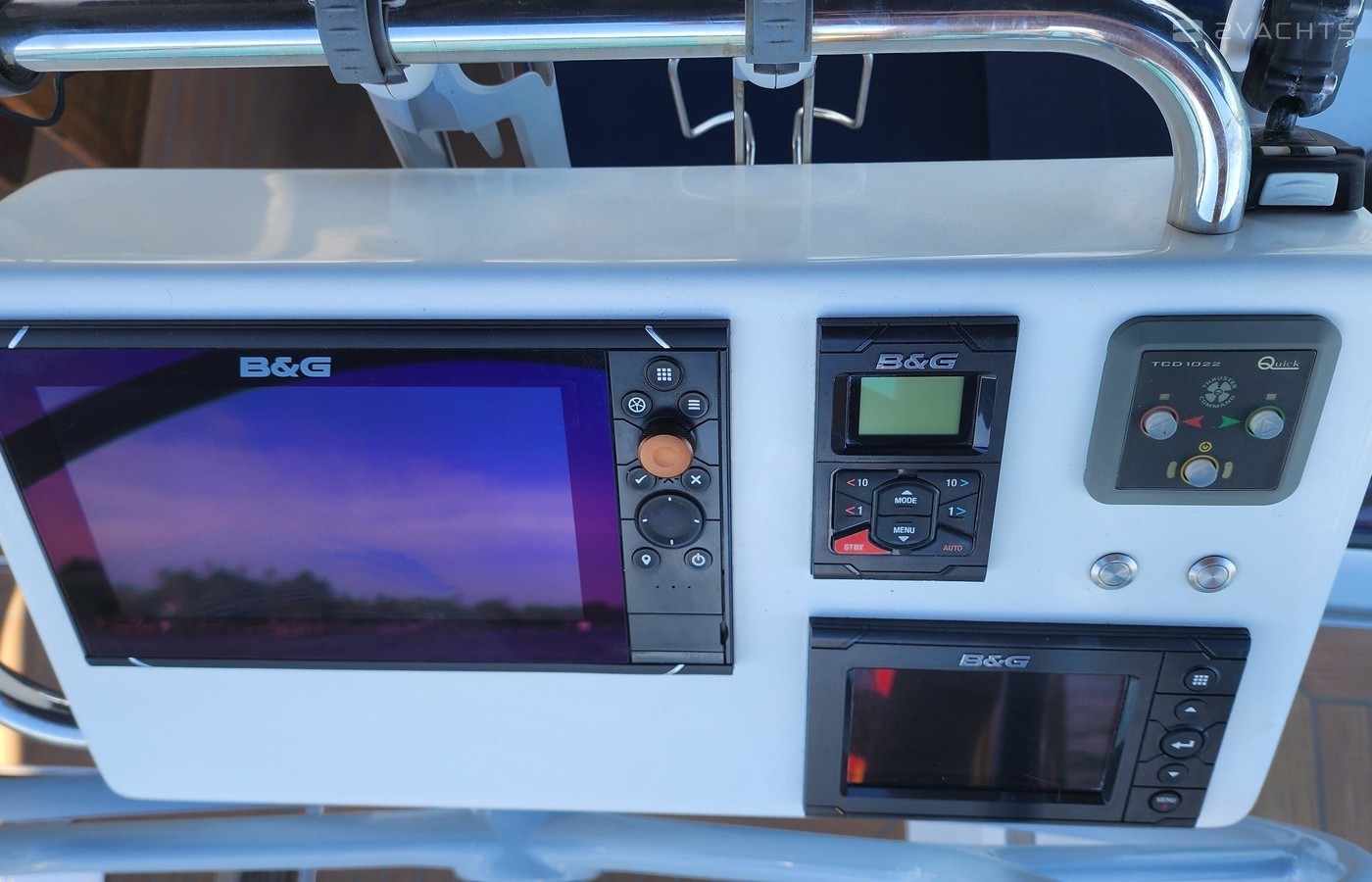 Cockpit table with all control panels for the boat