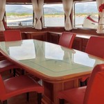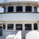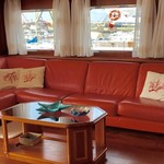 Mit einer Breite von 7,1 m und einen Tiefgang von 1,8 m, Sie hat einen GFK-Rumpf und GFK-Aufbauten.