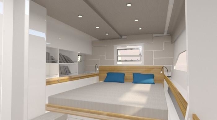 Die Segelyacht bietet Platz für Gäste in den Kabinen mit einem interior design von VPLP Design
