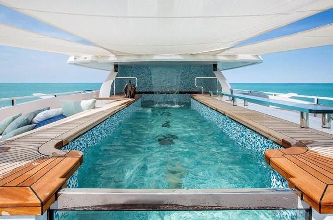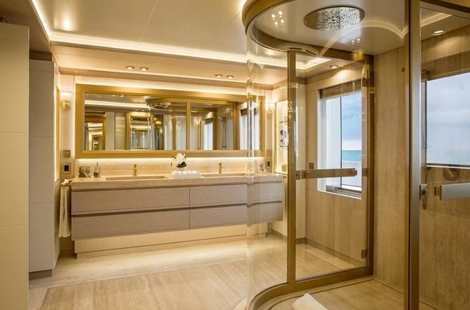 Die Motoryacht bietet Platz für 14 Gäste in 7 Kabinen mit einem Innenraum-design von Francesco Guida-und ein Exterieur-design von Hydro-Tec.