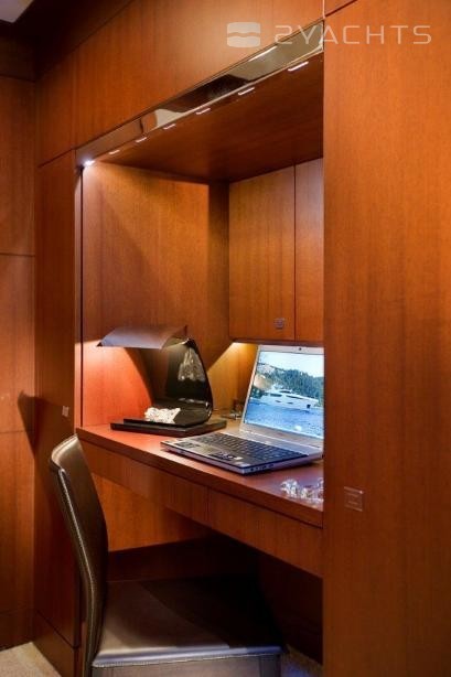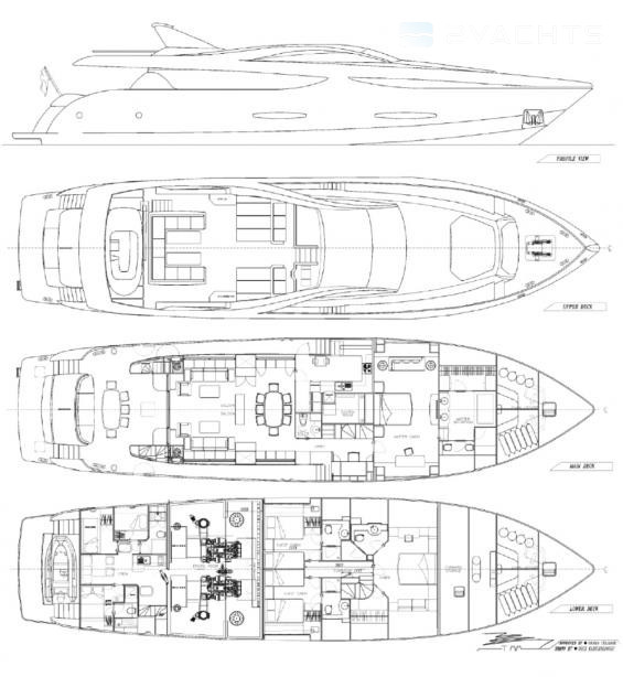 Ella es accionado por los motores CAT de 1800 hp cada uno y una velocidad de crucero de 19 nudos.
