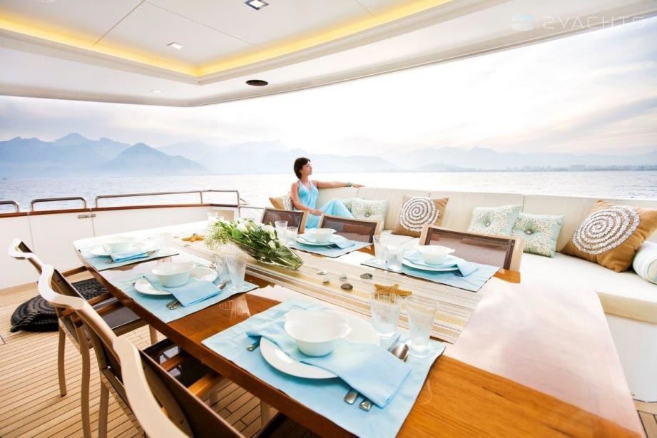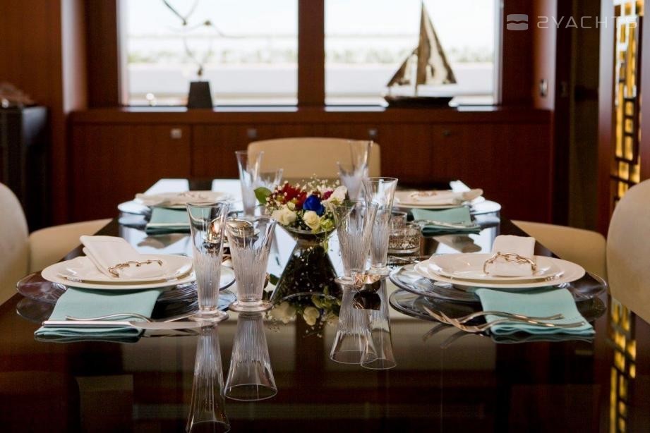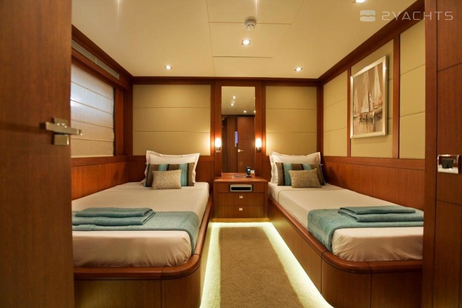 El yate a motor con capacidad para 8 invitados en 4 camarotes.