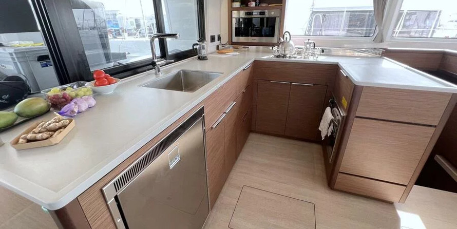 - Additional skipper's cabins in the bow, stainless steel dinghy lift system
