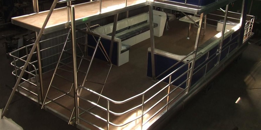 Катер - понтон двухпалубный (тримаран) с солярием