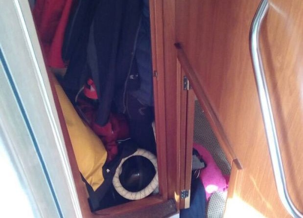 -D'une armoire, à l'entrée dans la cabine arrière