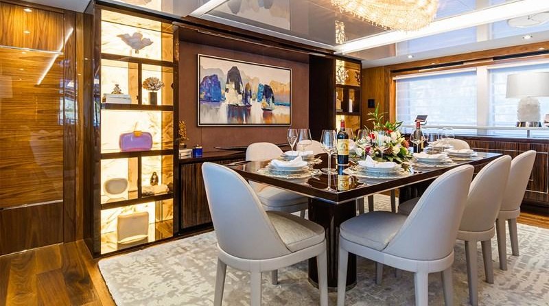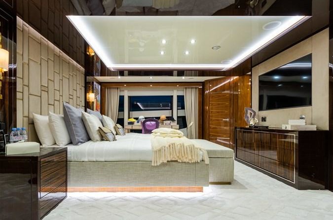 Le motor yacht peut accueillir 12 personnes dans 6 cabines. Le yacht a été conçu par Sunseeker.
