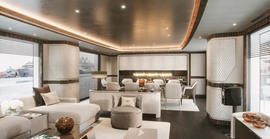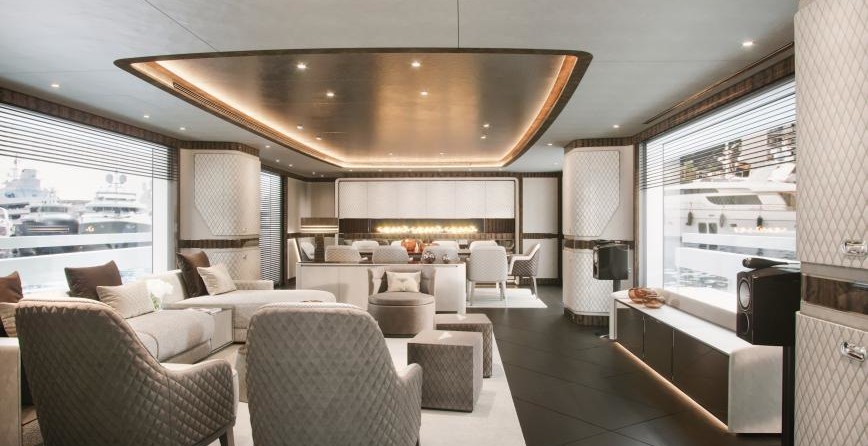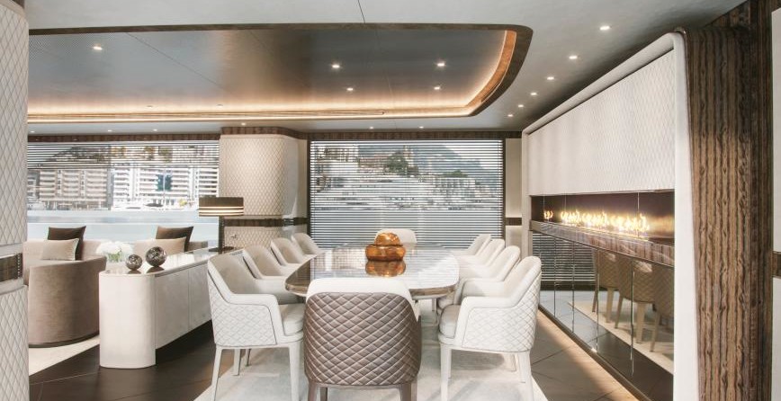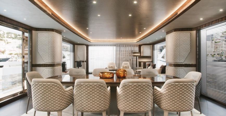 Il motor yacht può ospitare fino a 8 ospiti in 4 cabine con un interior design a cura di Giuseppina Arena / Dynamiq e un design esterno da Dobroserdov Design.