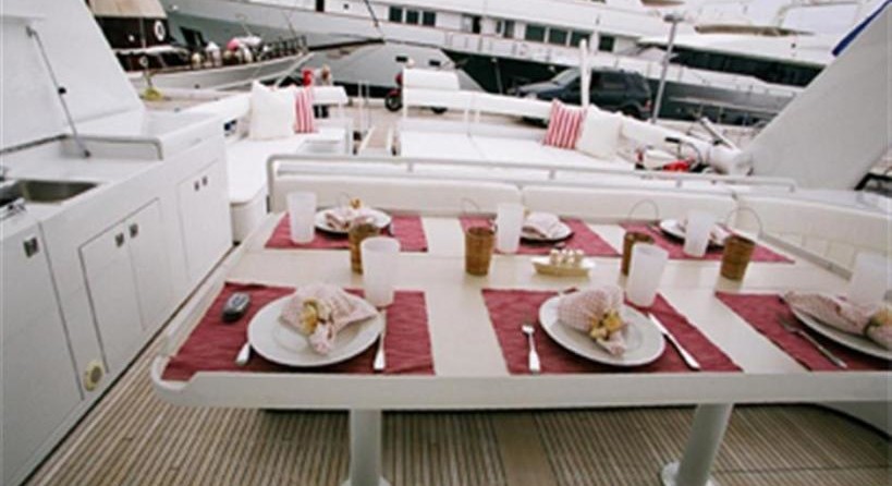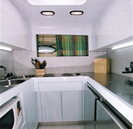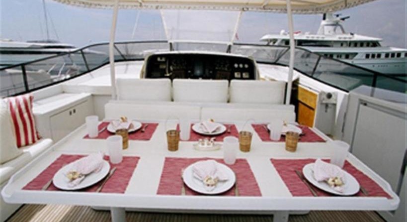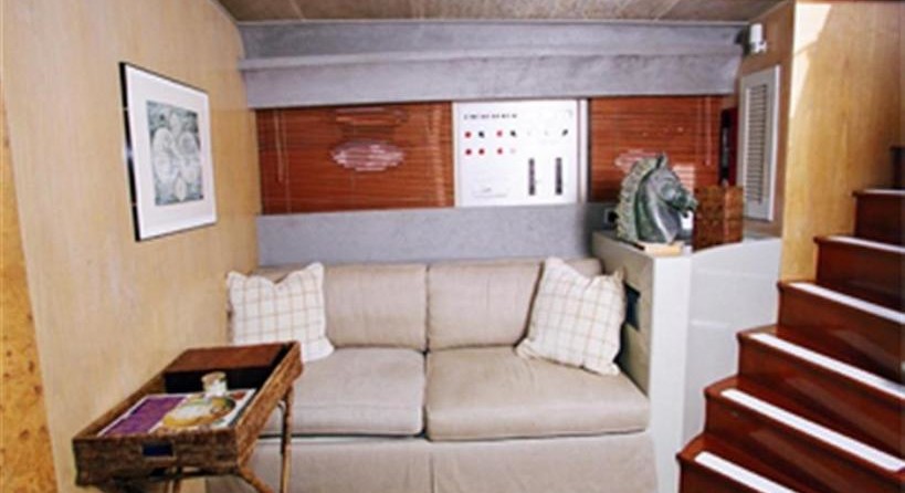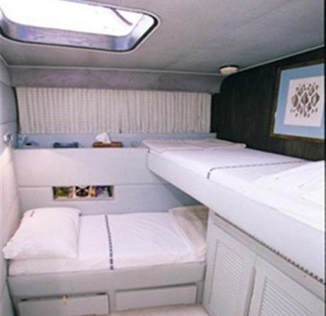 На моторной яхте могут разместиться 6 человек в 3 каютах.