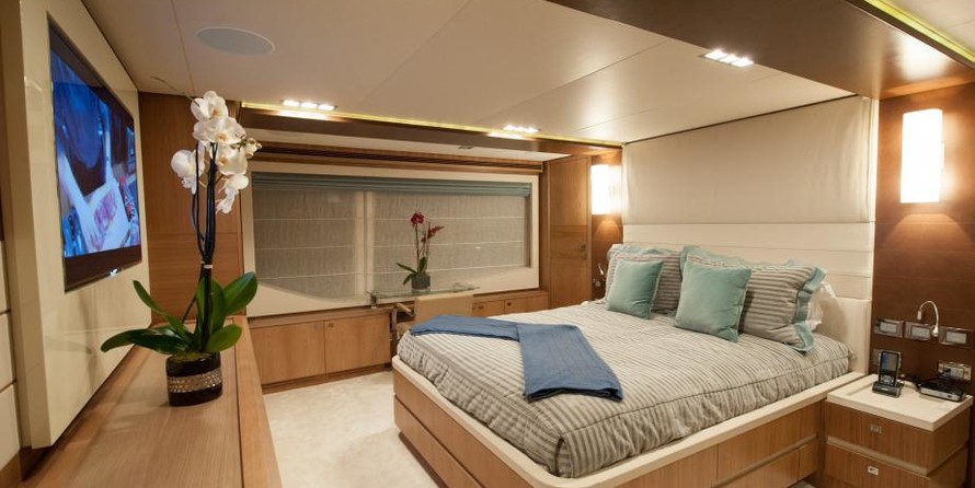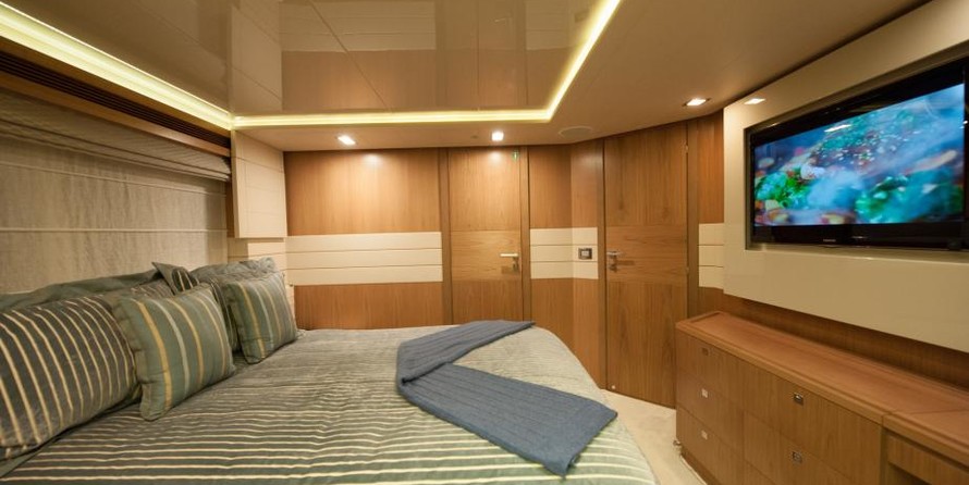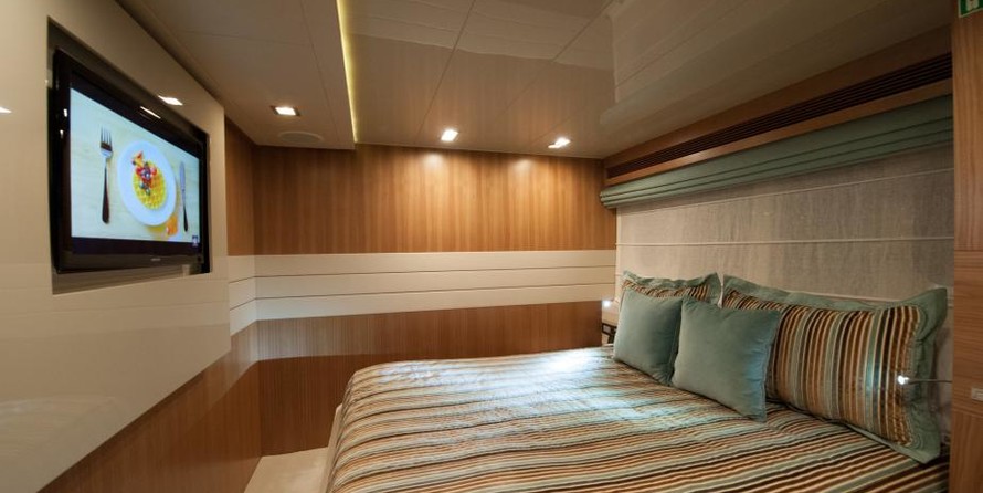 Моторная яхта может разместить 10 гостей в 5 каютах.